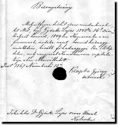 igazolja Györki Lajos hadnagy (fõhadnagy) parancsnoki